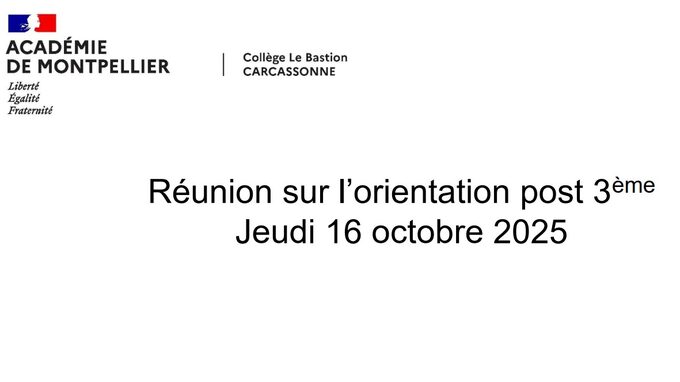 Vous trouverez en PJ le diaporama de la réunion sur l'orientation post- 3ème avec les parents du 16/10/25.